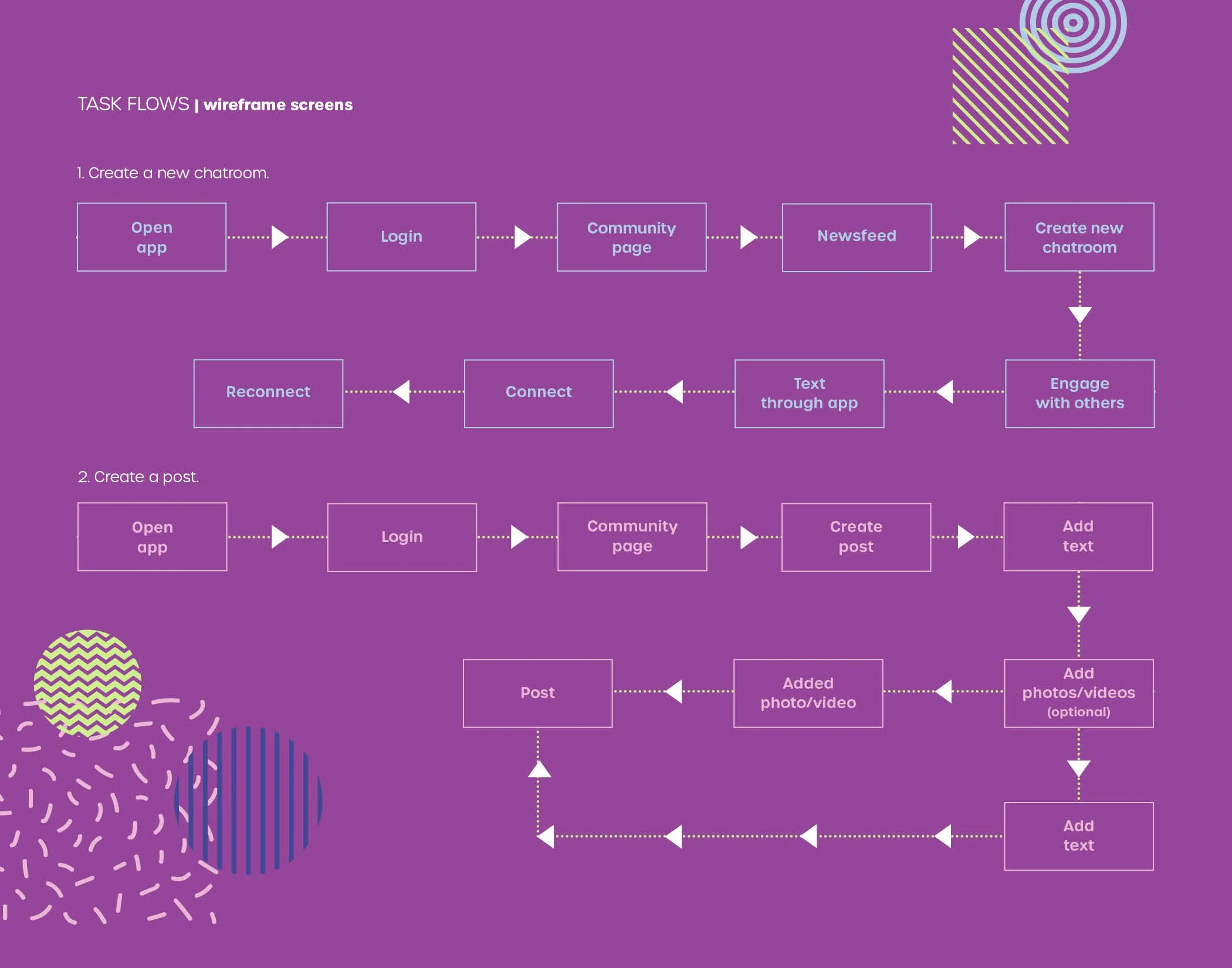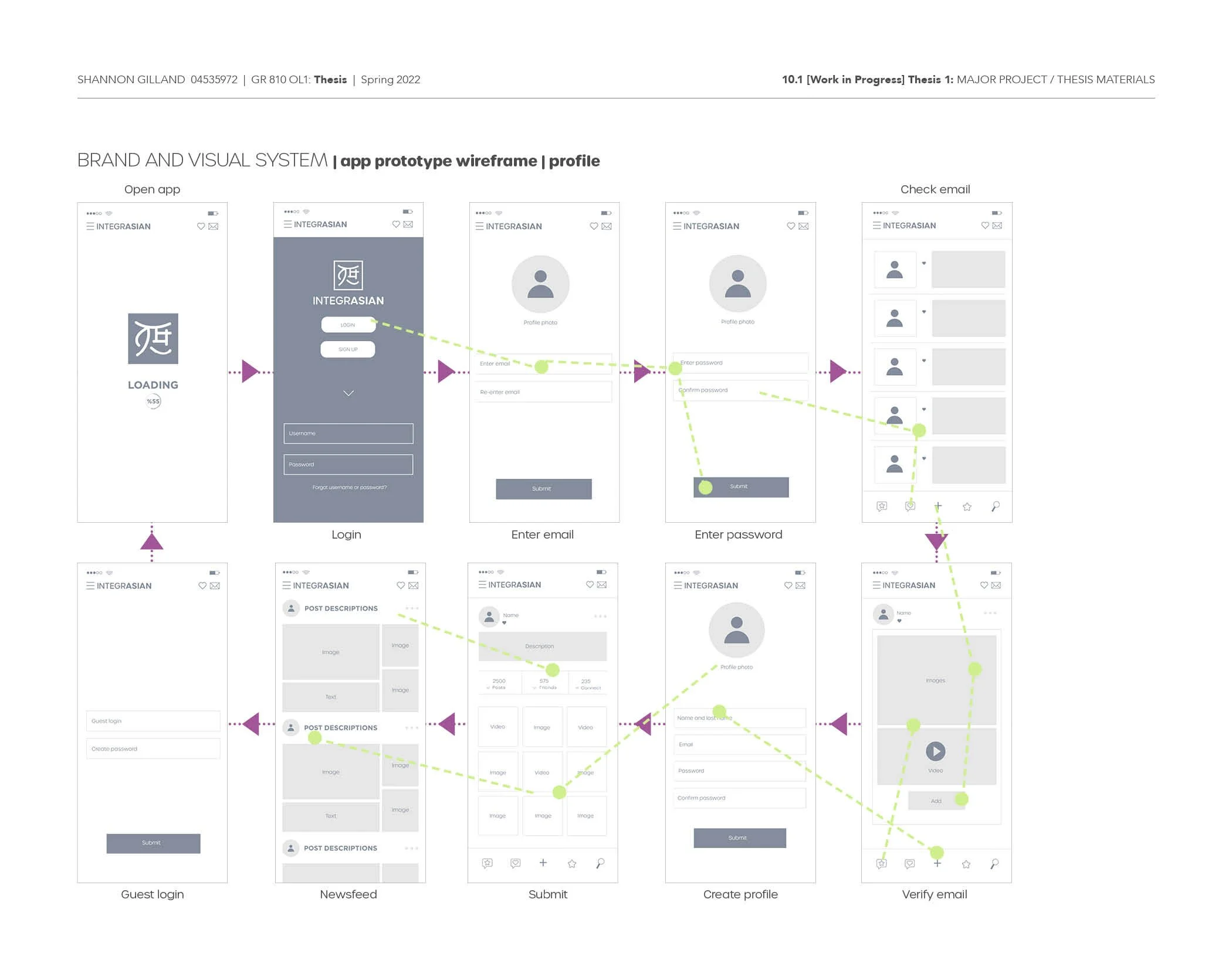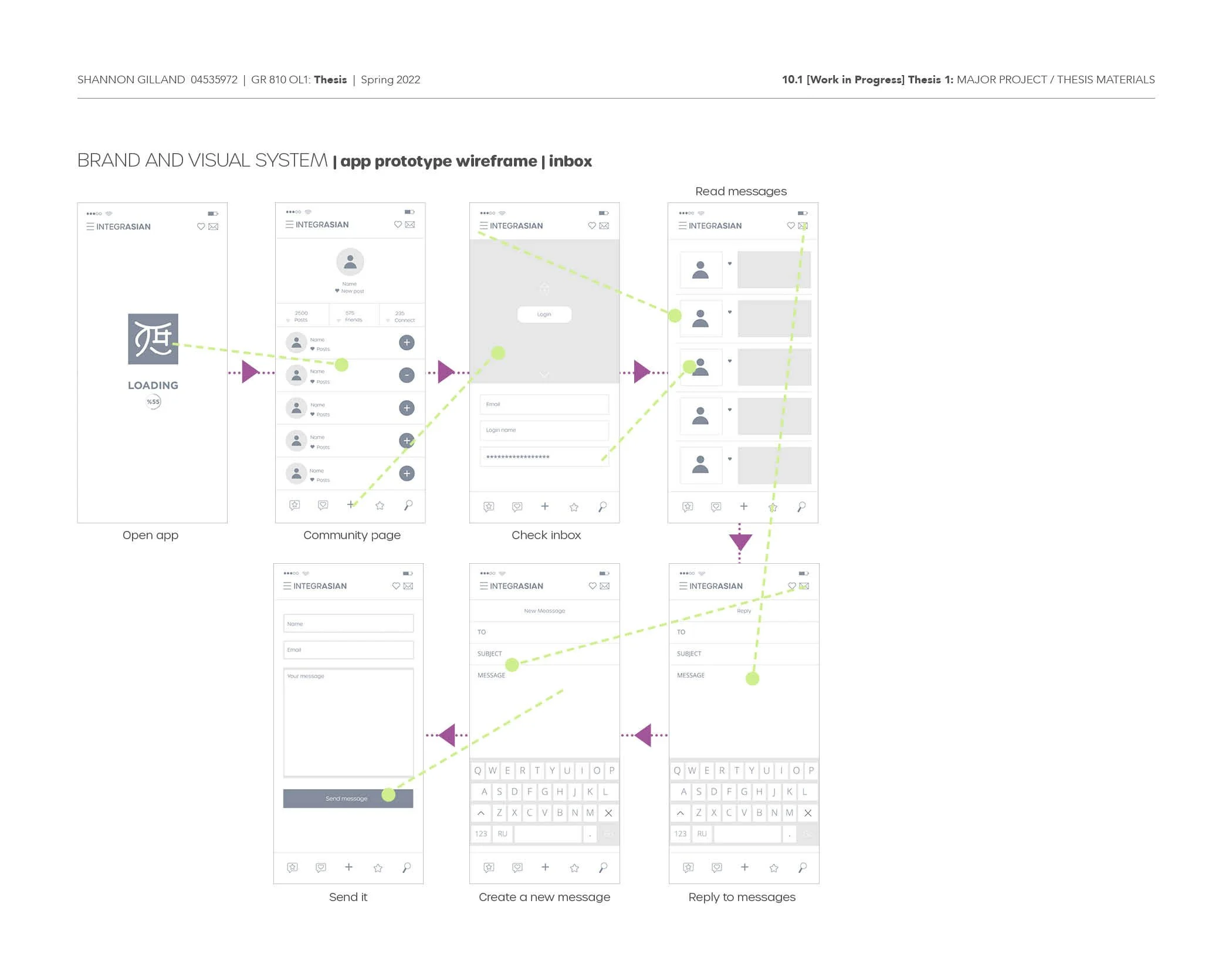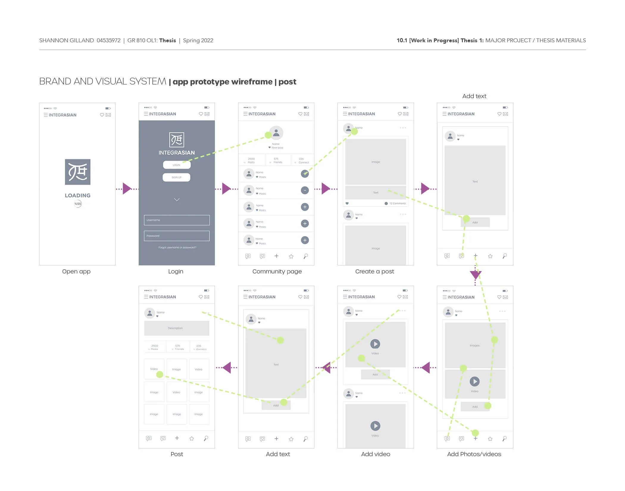 This week I reached out to some participants for this weeks user testing. I also created a survey so each of the participants can complete before the user testing so I can collect some more research since the last time most of the participants back out due to personal reasons or they just forgot. I also set-up a new date for a focus group for this weekend. I will post my results and feedback once I meet with everyone. I focused on refining my wireframes and added more information showing how to navigate through each task easier. I used green to show which app page connects to each other. While the magenta color is to show each step in order. I still need to add a little more info to help the user understand how it functions more.